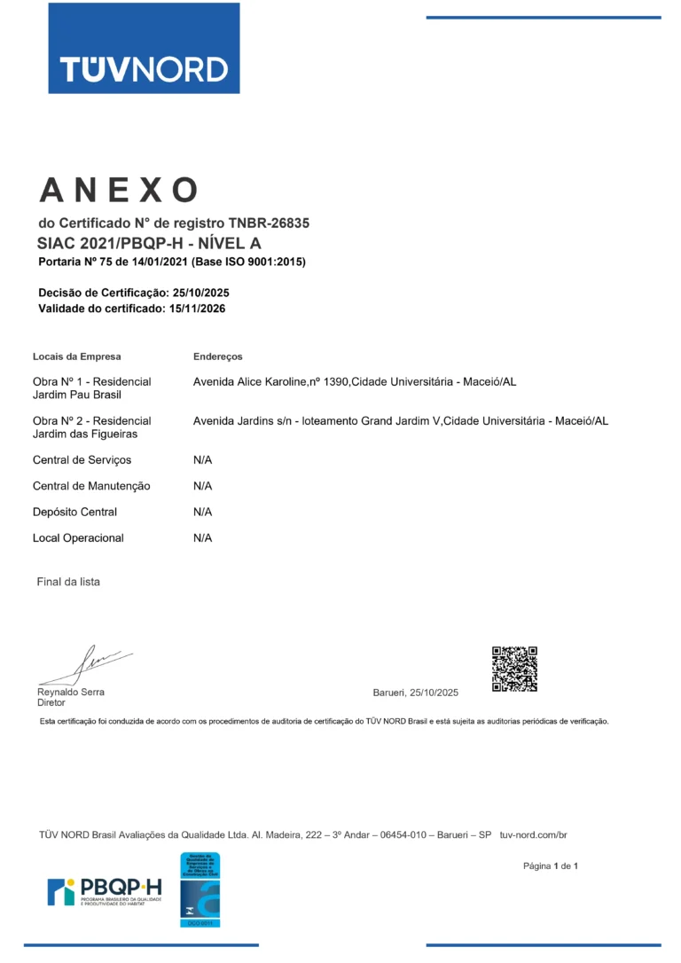 Além disso, a Engenharq LTDA, é certificada na ISO 9001 não escopo de obras de edificações. Ambas as Certificações são atestadas pelo Organismo de Acreditação TÜV NORD BRASIL.
