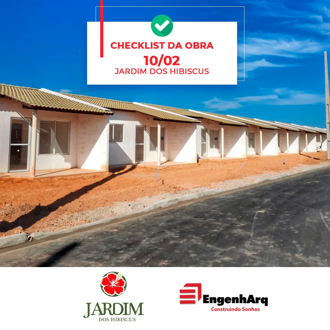Estamos muito felizes por estarmos com mais um empreendimento em condições avançadas. E para comemorar, queremos compartilhar com todos vocês o status da obra do Grand Jardim IV, Jardim dos Hibiscus. Acompanhe o checklist da obra e nos conte qual a sensação de ver seu sonho ganhando forma e a cada dia mais perto de ser realizado. Checklist da obra:HABITAÇÃOHABITAÇÃOUnidades habitacionais ✅ (concluído) Coberta completa ✅ (concluído) Aplicação do forro de gesso⛏️ (em andamento) Esquadrias interna e externa ⛏️ (em andamento) Pintura (interna e externa) e aplicação de textura 🖌(iniciada)INFRAESTRUTURAPavimentação, Meio-fio e linha d’água ⛏️ (em andamento) Postes de jardim 🔨 (à iniciar) Passeios e calçadas ⛏️ (iniciado) Muros internos e externos ⛏️ (em andamento) Área de lazer, piscina e quadra poliesportiva ⛏️(iniciado) Implantação de postes de alta-tensão ⛏️(em andamento) Guarita (à construir) .